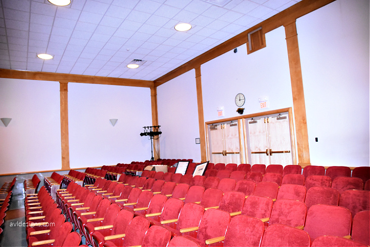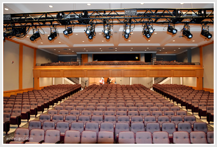 AVL Designs Inc. was contracted by the architects, the CPL Team, to provide theater design or updates of the space. First and foremost was the addition of a full balcony. This was no small trick as the space is quite low and budgets did not support raising the roof.