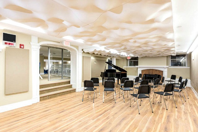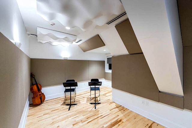 When older buildings are being converted for new uses, it is always a challenging endeavor. If the conversion of that edifice is for musical use, it really puts your design skills to the test. Canisius High School in Buffalo New York made the decision to convert the century-old building into a fine arts center housing multiple rehearsal spaces, practice rooms and a small recording studio. AVL Designs Inc. was procured to provide acoustic design for the spaces. Many of the spaces were lower in height and oddly shaped, which definitely affects acoustics. It was important that we make the spaces sound larger than they actually are, so overhead diffusion was introduced. Diffusive canopies make rooms sound larger as well as evening out the response over the ensemble. Frequency specific absorptive panels were also utilized to balance the frequency response for the spaces, for each ensemble type.
