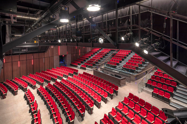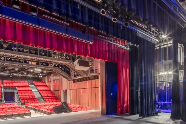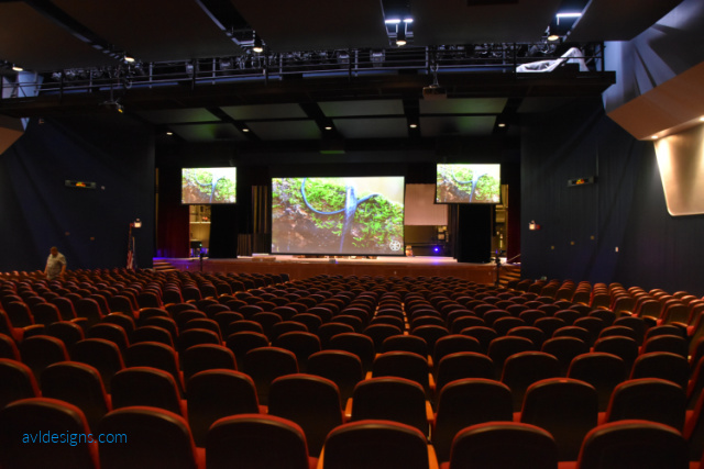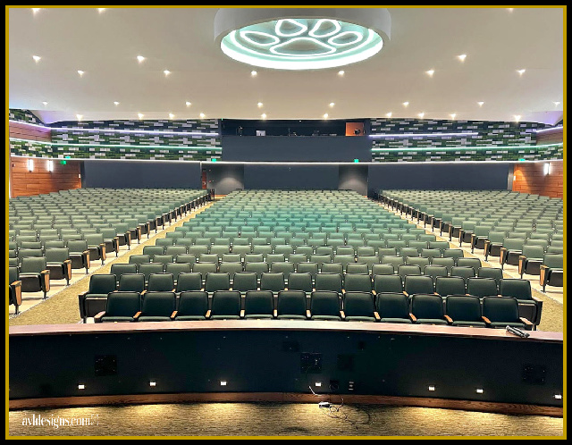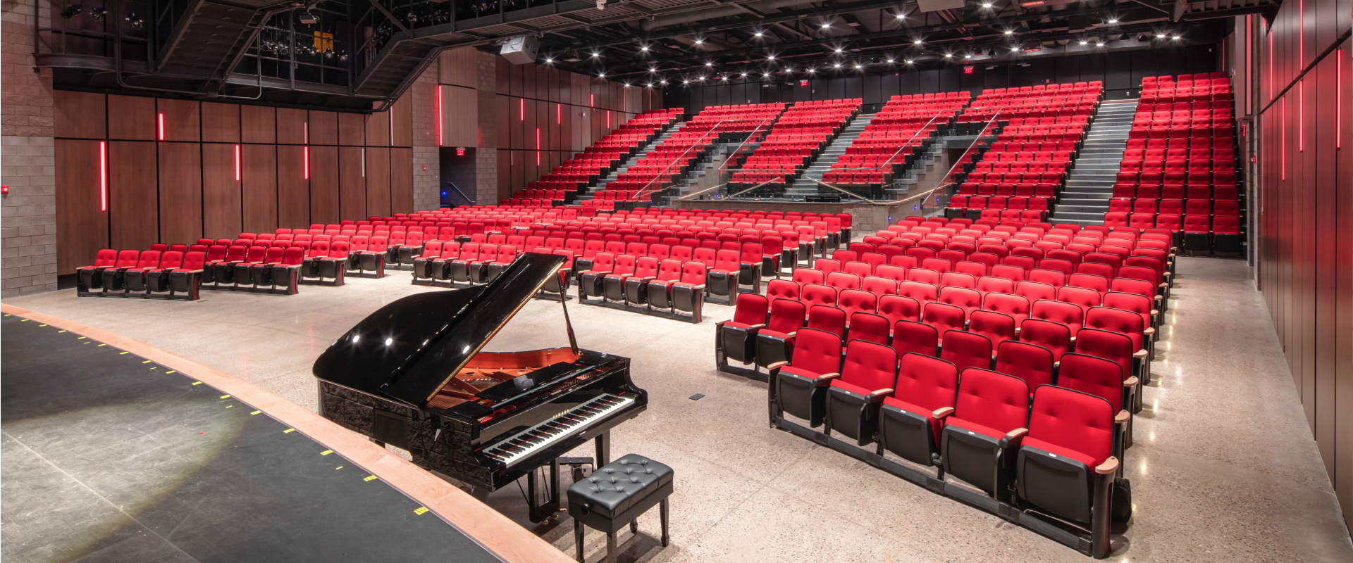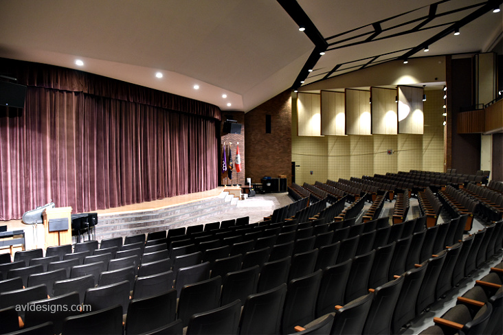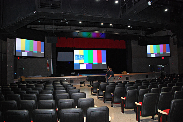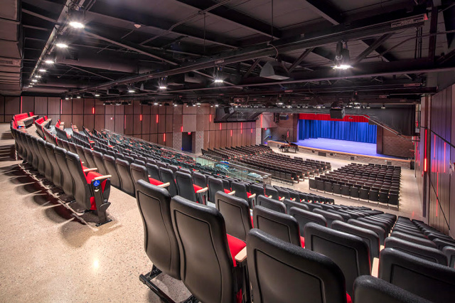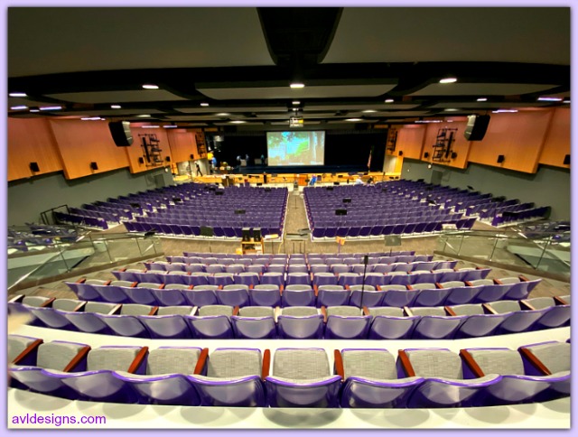 The C.W. Baker High School in Baldwinsville NY is not your typical high school. They host more than 50 events in their auditorium annually. Events include Broadway theater, dance, concerts, and a variety of the other performance events including multimedia. When the renovation of the BCSD high school auditorium began the goal was to design for performance. Unfortunately, the current footprint and elevation of the existing auditorium had to remain. The old auditorium had very poor lighting positions. Cramped, hard-to-access catwalks were poorly located making it difficult to light the stage and pit areas. To achieve proper lighting positions, a design was undertaken similar to a large black box theater: no ceilings, all black overhead. Two large easily accessible catwalks with side galleries as well as Shakespeare lighting positions were included in the new theatre. The new lighting system, which is based on ETC equipment, combines traditional dimming and fixtures with newer LED technology. An extensive inventory of Source Four® fixtures as well as color source fixtures and Vari-Lite light moving heads was included. Backstage and entry areas include blue light marker systems on dimming controls. This allows for safe movements during low lighting level scene changes. Controls include an ETC Ion with dual fader wings as well as an ETC Paradigm architectural processor. These systems access all of the features of the various lighting elements within the room for day-to-day performance use. All the house lights are individually RDM addressed Color changing fixtures. This allows an immersive environment for shows. The room can provide color and movement to match performance work occurring on stage. Due to the space being long relative to its width, the architect chose to add stadium seating at the back of the room. This not only helps with seating and sightlines but also with acoustics. Speaking of acoustics, a decision was made in the design phase to implement electronic acoustics utilizing Yamaha AFC Technology. Electronic acoustics allows for the changing of the environment to accommodate for various styles of music and performance uses. The reverberation time and early reflections are adjustable within the system both on stage and in the seating areas. The base reverberation time is suited to theater and voice projection. Other presets include low-frequency extension as well as increased decay times. The sound system is designed around point source loudspeakers. Due to the long room, many designers would have turned to line arrays but our experience has shown that negative sidewall reflections in narrow rooms outweigh the throw advantages. AVL chose, instead, to use a unique point source loudspeaker based on Danley Sound Labs synergy horns. These phase coherent loudspeakers provide excellent pattern control and throw. Because of the black box design, speaker placements could be optimized. This was true for main as well as delay elements. Control for the Sound system utilizes both to day today and performance-based mixers. For day-to-day use an Ashly Ne 8800 with gain sharing auto mixer operates the system. The performance console is Sound Craft digital. An iPad interface provides a very flexible platform for rehearsals as well as performance use. Crestron Control systems provide access to many aspects of the space. This includes projection with the main and two side screens, as well as a camera feeding green rooms and backstage areas. Each area has independent control over their feeds. Feeds are also provided to the foyer including separate audio for preshow and intermission control. Clearcom intercom as well as LED call light systems were included for backstage and greenroom areas. The auditorium went online with the grand opening on October 19, 2017.
