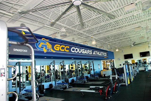 Multi-faceted design project for SUNY GCC’s Richard C. Call Arena [athletic center] including outdoor stadium, press box, indoor fitness center and lobby common area.