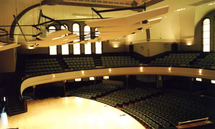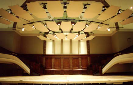 The David M. Hochstein School of Music resides in a historical church building in downtown Rochester. Hochstein not only refines some of the best talent in the area, but also hosts numerous theatrical and concert series, including “Noontime at Hochstein,” which is simulcast on WXXI Radio. This series includes numerous solo artists as well as the Rochester Philharmonic Orchestra. The stage area had been the original platform of the church. AVL was tasked with designing a new stage area including curtains, rigging, lighting, and support structures, while maintaining the historic nature of the space. Lighting and motorized rigging are entirely concealed with ceiling spaces. Key Elements Radius Custom Designed Space Grid Motorized Curtain and Scenery Support battens Theatrical Lighting Audio Systems Recording and control booths with Broadcast Interfaces