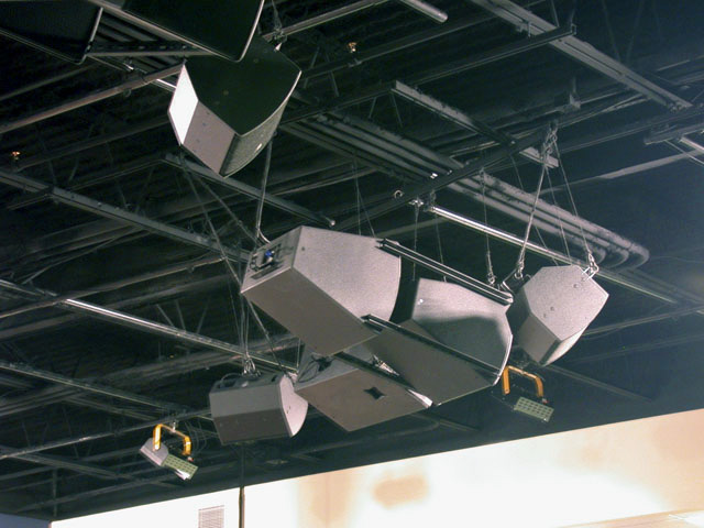 Hope Christian Church presented some significant design challenges in their new sanctuary. Their new worship space was essentially a large low-height office building. The church wanted high end high power worship, live video production, and studio grade lighting. The starting point was to develop a structural mounting grid that could support all audio, lighting and related systems. Once the grid was developed, lighting was designed as a first priority. Video quality was a key element. With the lights already taking up space, an audio system had to be developed that would provide concert quality live audio and not block sight lines. Large loudspeakers often used for these applications just would not work. To get the directivity and sound quality needed, AVL developed a set of phase steered arrays that, while low profile, provide the type of impact associated with concert sound in a tiny package. In-ear monitoring, separate house and monitor consoles, and an array of microphone and processing completed that package. Some critical listeners remarked that the completed system sounded like giant studio monitors.