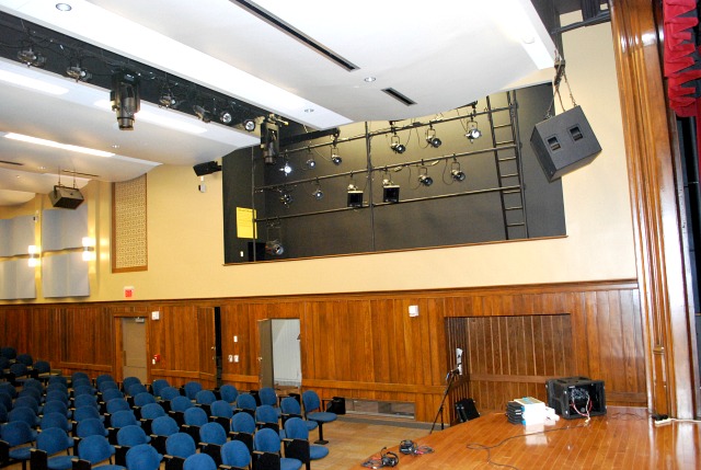Sutherland Hall at Penn State University’s Abbington Campus houses a classic show box recital hall with a stage which had been converted into a lecture hall. The university wanted to improve the space to accommodate a wide range of activities including: theater, music, rock concerts, and multimedia events. This called for challenging upgrades to acoustics, stage rigging, lighting, audio and AV systems. One of the more difficult aspects was installing all of this all to a wood framed building. Also included in the upgrade was a second space: a swimming pool converted into a lecture hall. Features: • Acoustical Design including optimized waveforms • New Audio system capable of high definition and high sound pressure • level – Danley Sound Labs Speakers and Subwoofers • Multi-tiered audio controls including automated and manual digital • consoles. • New ETC dimming systems, controls and LED lighting • New Stage rigging and motorized Cyc System
