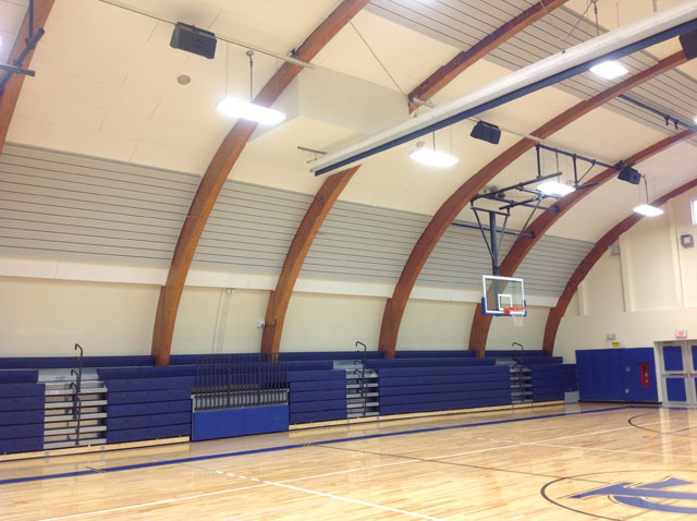 The goal of the St. Bonaventure University’s basketball arena renovation was to improve sound intelligibility for game announcing as well as other room uses such as graduation ceremonies and events containing musical content. AVL Designs Inc. chose Danley Sound Labs Inc. and Fulcrum Acoustic LLC. loudspeakers for their phase coherence, moderate cost, and high SPL capability. Combinations of SH 96i, SH 69i, CX1226, GH60, and DBH 218 subwoofers were selected to cover the various venue orientations. Power is provided by Danley DNA Amplifiers. Midas M 32 consoles are utilized for the arena, as well as on-air video systems. Sennheiser wireless systems are coupled with Neve Portico 5045 processors to provide high gain before feedback operation. QSC Core 500i processors are used to provide DSP and control processing. Box suites in the St. Bonnies field house are served by Ashly Audio Pema amplifiers with DSP, and JBL Control series ceiling speakers.