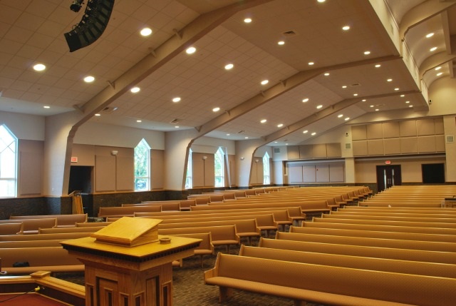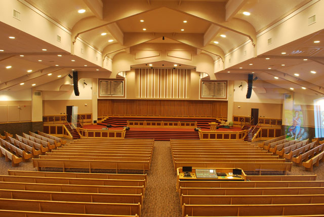 This church contacted AVL in the midst of the design phase of their new sanctuary. They were seeking assistance with acoustics, audio and lighting. The congregation of 1000+, who immigrated to the US during the Clinton administration, were a strong and dedicated community. Their plan was to use volunteer labor from the congregation to build much of the new building, including the audio and AV systems. This proposal can be daunting to consultants because the average church member does not usually have the technical skills required for much of this work. However, AVL found that these volunteers were highly skilled. Many of the laborers were engineers, software engineers and trades professionals. The workmanship on this sanctuary was among the best we have ever seen with great attention given to detail that speaks of old-world artisans. The audio and AV designs, however, were nothing “old world.” They are state of the art, utilizing digital audio consoles, ribbon line array loudspeakers and state of the art video projection and controls. On our recommendation, the church did retain an audio contractor to provide equipment, speaker rigging, system terminations, rack build, set up, and tuning. During commissioning of the system it became apparent that this congregation would make full use of everything they installed and would even stretch the limits. One of their software engineers actually rewrote some console code to fix a glitch they found. “Old school” in a new world!