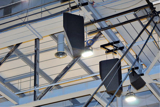 The purpose of the renovation was to improve sound intelligibility for game announcing plus other room uses such as graduation ceremonies and events containing musical content. Danley Sound Labs Inc. and Fulcrum Acoustic LLC. loudspeakers were chosen for their phase coherence, moderate cost, and high SPL capability.