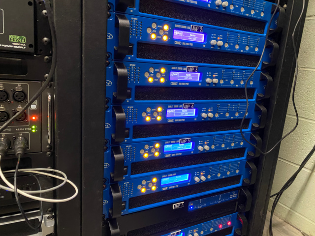 Combinations of SH 96i, SH 69i, CX1226, GH60, and DBH 218 subwoofers were selected to cover the various venue orientations. Power is provided by Danley DNA Amplifiers.    Midas M 32 consoles are utilized for the arena, as well as on-air video systems.  Sennheiser wireless systems are coupled with Neve Portico 5045 processors to provide high gain before feedback operation. QSC Core 500i processors are used to provide DSP and control processing.